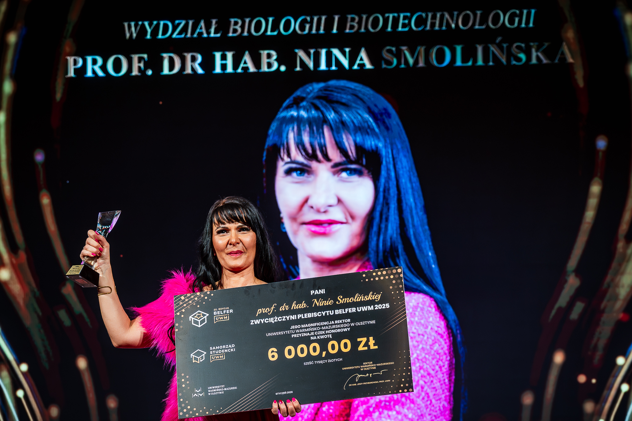 Tytuł Belfra UWM 2025 to dla prof. dr hab. Niny Smolińskiej nie tylko osobiste wyróżnienie, ale również dowód na sens wieloletniej pracy dydaktycznej i siłę całej społeczności akademickiej Wydziału Biologii i Biotechnologii.